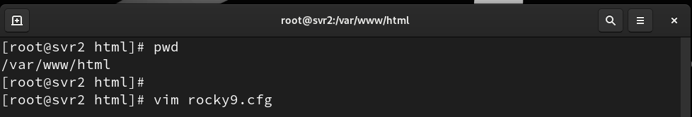 1 | [root@svr2 ~]# mkdir /var/www/html/rocky9 |