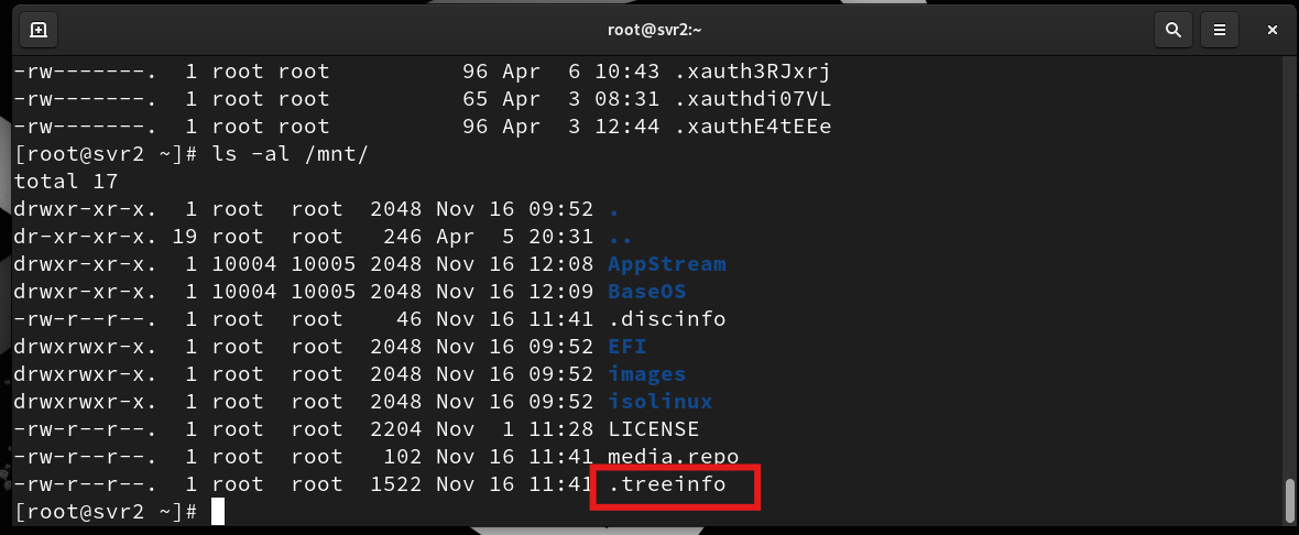 1 | [root@svr2 ~]# cp /mnt/.treeinfo /var/www/html/rocky9/ |
